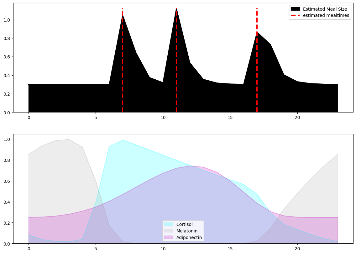 Visualize how hormones (Cortisol, Melatonin, Adiponectin) impact your blood sugar.